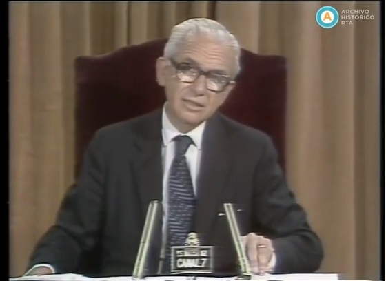 La conductora, Mirtha Legrand, posa abrazada al actor estadounidense George Hamilton caracterizado como el Conde Drácula, papel que interpretaba en la película recientemente estrenada, "Amor al primer mordisco".